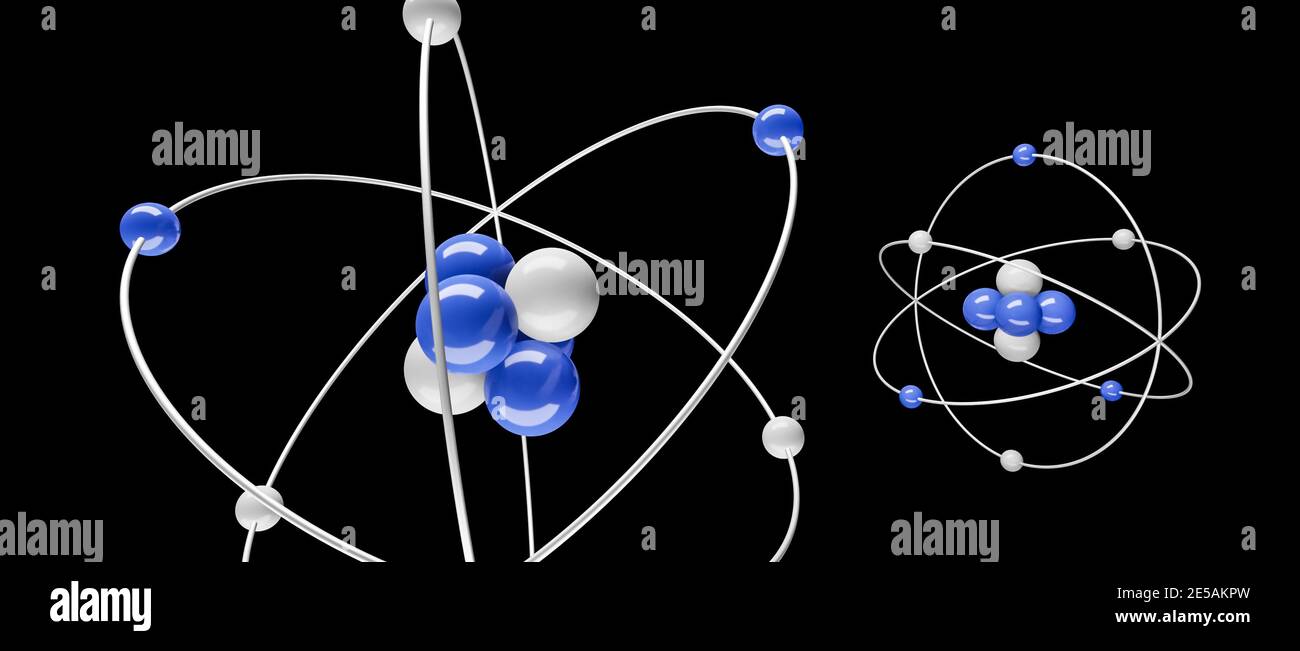 modelo de estructura de átomo, núcleo de protones y neutrones, electrones orbitales. modelo