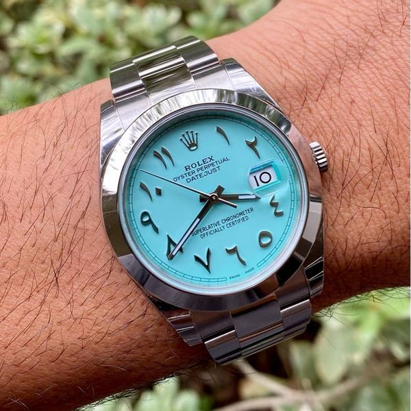 FS Rolex Datejust 41mm Ref 126300 Custom Tiffany Blue Arabic Dial Full Set WatchCharts